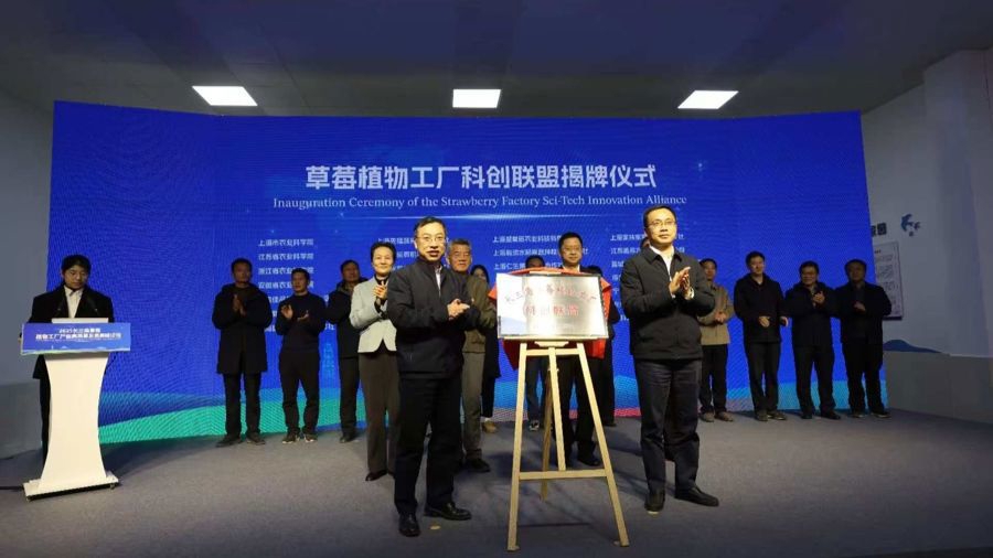在现场,“草莓植物工厂科创联盟”正式揭牌成立,今后将通过搭建政产学研用协同创新平台,推广草莓工厂化智能化栽培场景,培育更多更好的特色品种,让草莓生产过程更加安全,让草莓产品更加高品质,在丰富市民“果盘子”的同时,示范带动农民增收致富。