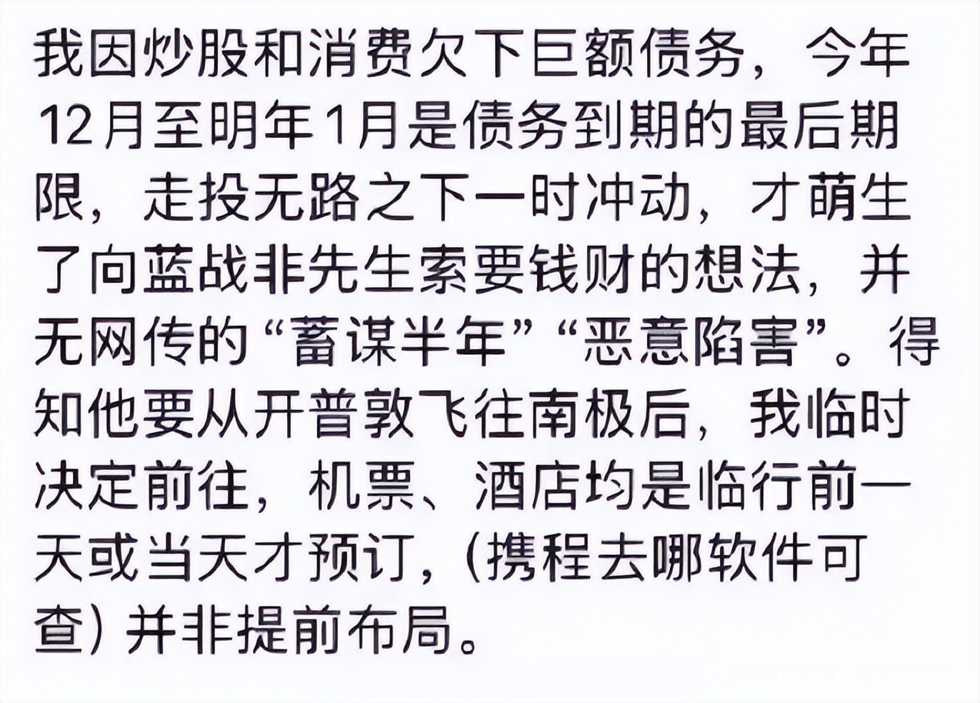 不过,在其发言当中也不难发现,所谓的“苦衷”,完全是上不了台面的理由,他之所以欠债,主要是由于炒股和花费。